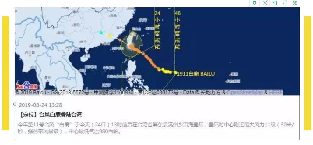 中國天氣網(wǎng)訊 今年第11號臺風(fēng)“白鹿”于今天(24日)13時前后在臺灣省屏東縣滿州鄉(xiāng)沿海登陸,登陸時中心附近最大風(fēng)力11級(30米/秒,強熱帶風(fēng)暴級),中心最低氣壓980百帕。預(yù)計,之后移入臺灣海峽,于今天夜間到明天早晨在福建漳浦到廣東惠來一帶沿海再次登陸。受其影響,24-26日,華南沿海一帶將掀起狂風(fēng)暴雨,粵北山區(qū)局地特大暴雨,地質(zhì)災(zāi)害風(fēng)險高,需密切關(guān)注。